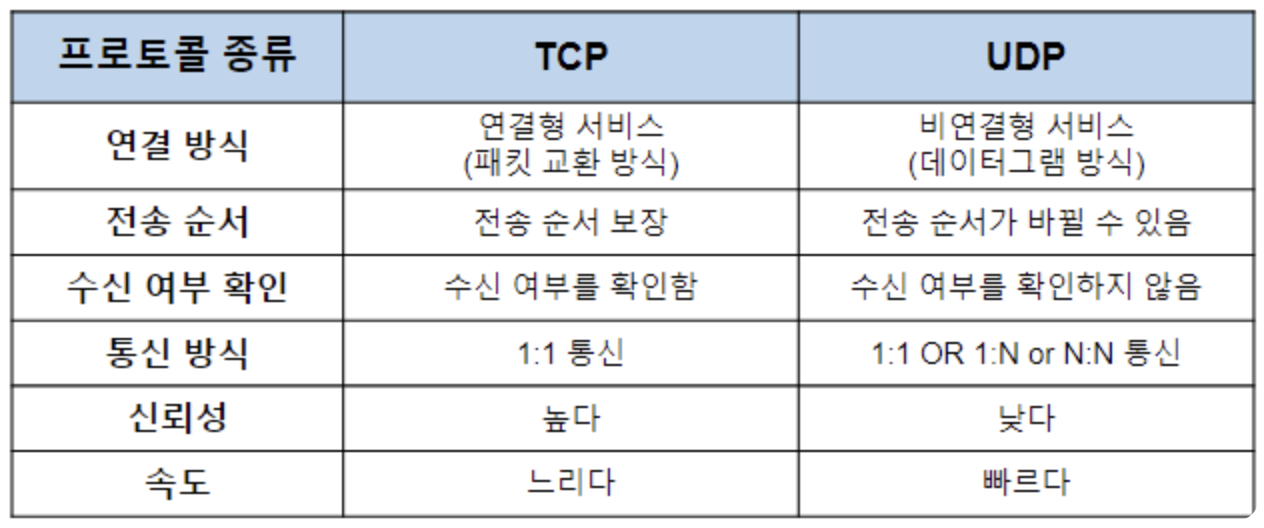 중요한 것은 TCP와 UDP의 차이를 인지하는 것이기 때문이 여기서는 표를 사용하여 두 프로토콜을 비교해보도록 하겠습니다.